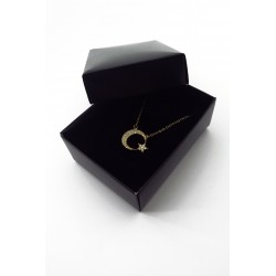 Işıltılı detayları ve zarif tasarımıyla dikkat çekiyor. Ay yıldız motifleri, gece gökyüzünün büyüsünü ve gizemini yansıtarak kolyeye benzersiz bir hava katıyor.